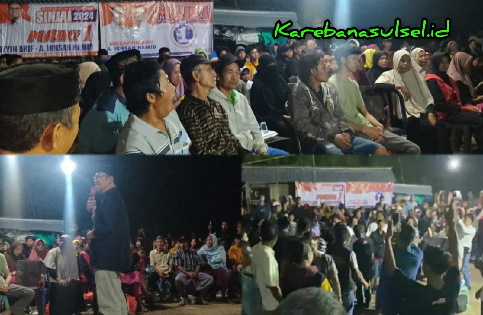 Meskipun demikian, saat ini para Paslon telah mempersiapkan dirinya masing masing untuk bertarung pada pilkada 2024 tahun ini. Salah satunya yang terpantau oleh media saat ini, terlihat Paslon nomor 1 Muzayyin Arif dan A. Iksan Hamid dengan takline MAIkI bertandang di wilayah pelosok desa di kecamatan sinjai borong pada selasa malam 05/11/2024.