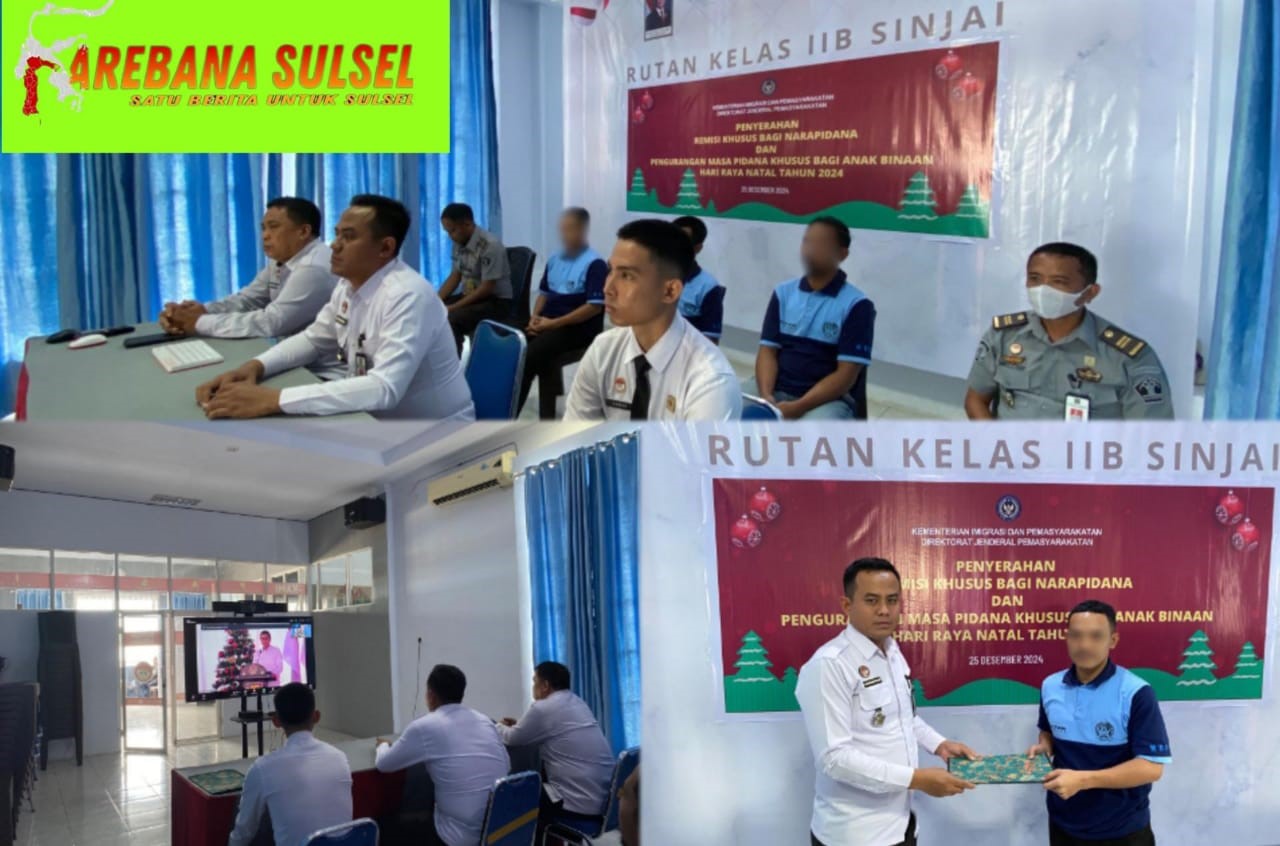 SINJAI, Karebanasulsel.id- Rumah Tahanan Negara (Rutan) Kelas IIB Sinjai mengikuti kegiatan pemberian remisi khusus Natal yang dilaksanakan secara virtual oleh Menteri Imigrasi dan Pemasyarakatan, Agus Adrianto, Jumar (25/12/2024).