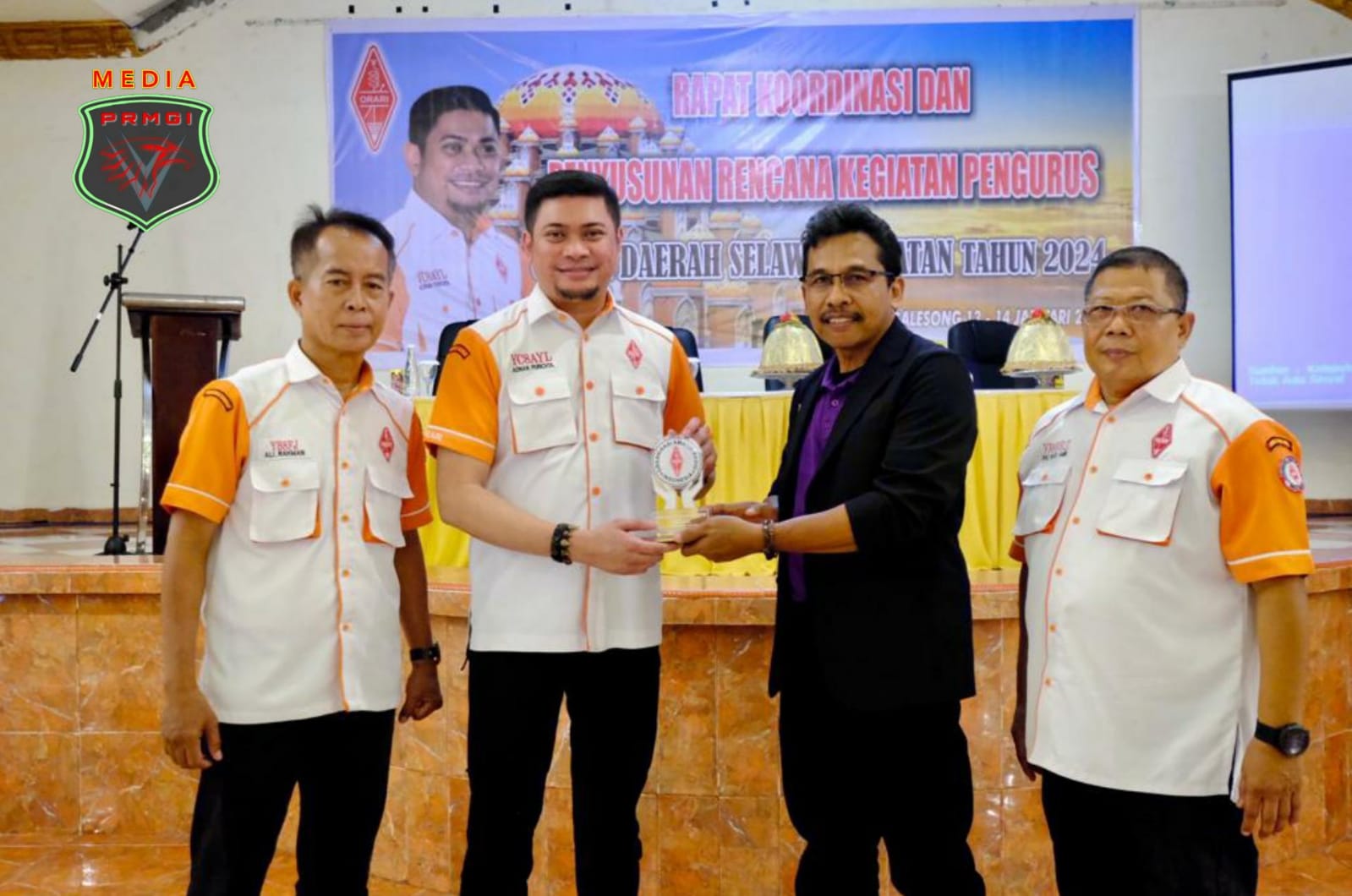 Penyerahan PLAKAT sebagai ORDA TERBAIK dalam ORARI ANNIVERSARY AWARD TAHUN 2023 diserahkan oleh Heriyanto, YB8TEL kepada Ketua ORDA Sulawesi Selatan.