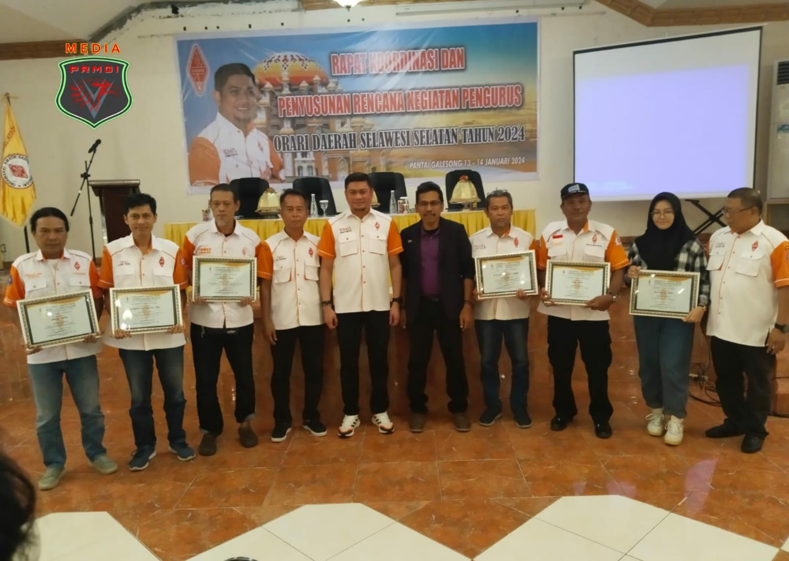 Penyerahan PLAKAT dari ORARI Daerah Sulawesi Selatan kepada Kepala Balai Monitor Spektrum Frequency Radio Kelas I Makassar, Heriyanto-YB8TEL atas kerja samanya yang baik selama ini dengan ORDA Sul-Sel.