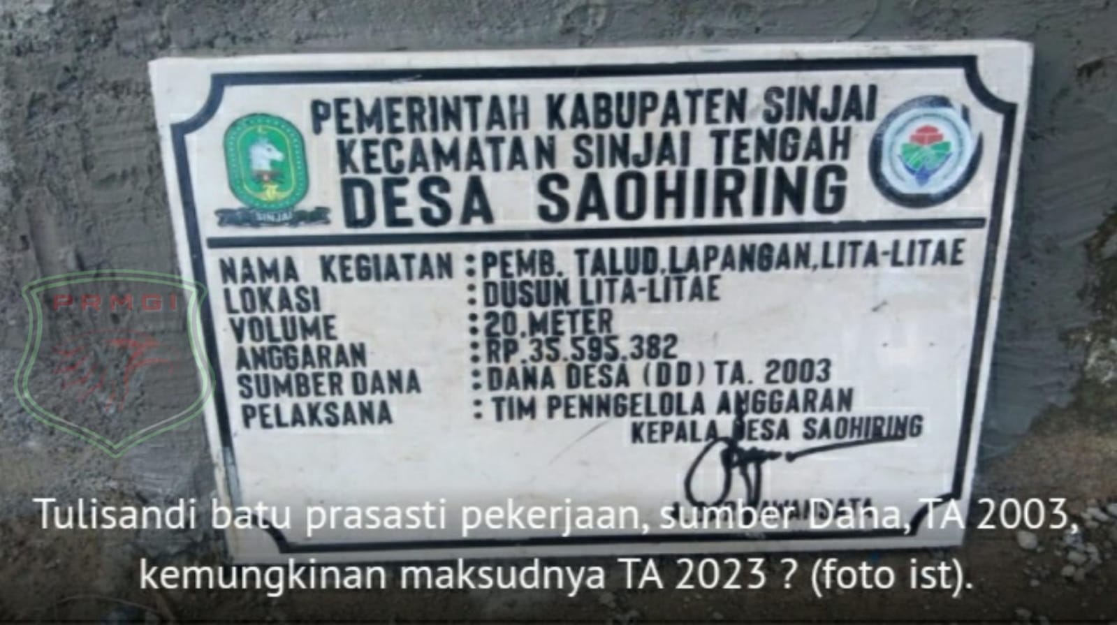 Tulisan di batu prasasti pekerjaan, sumber Dana, TA 2003, kemungkinan maksudnya TA 2023 ? (foto ist).