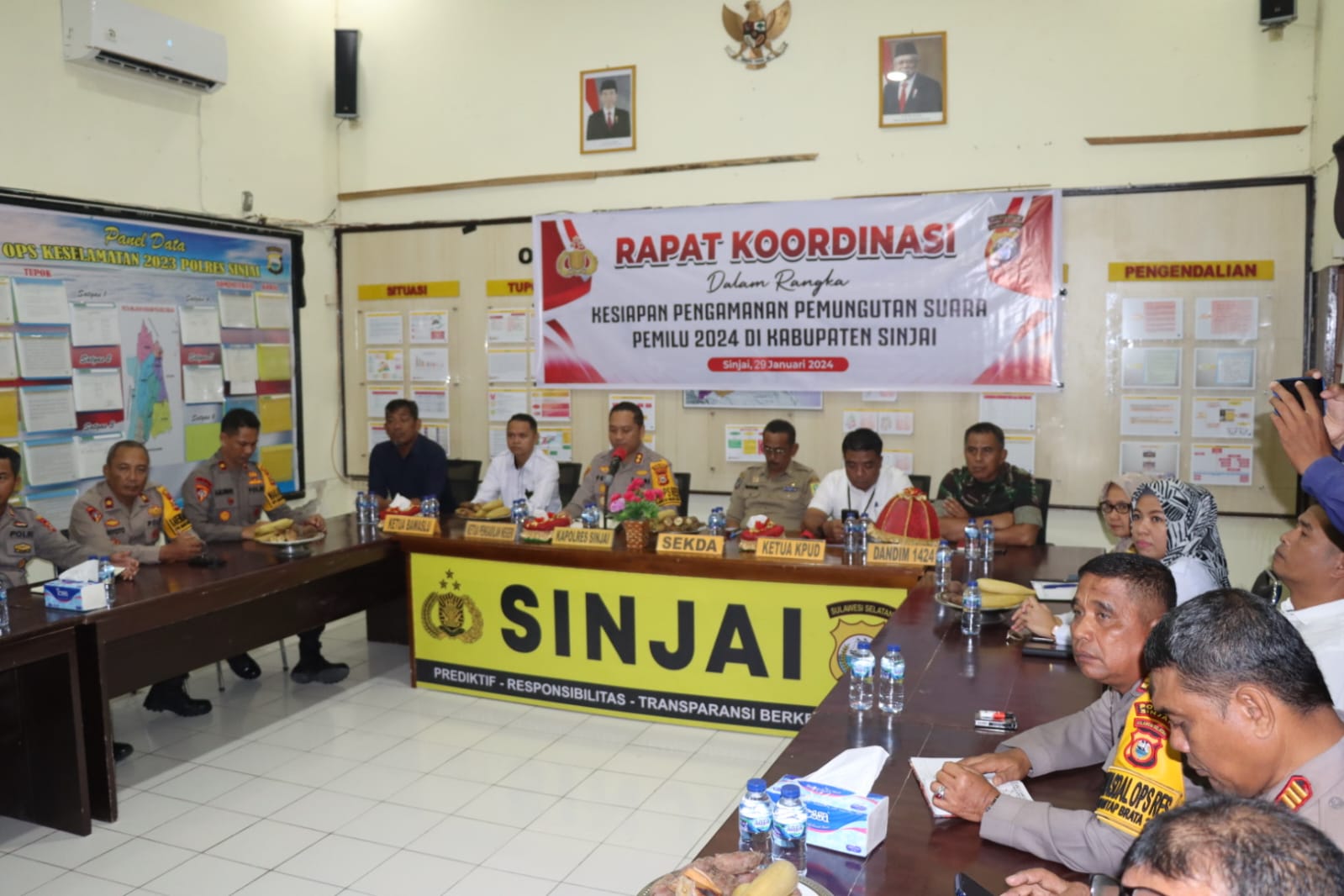 SINJAI, Sul-Sel. Karebanasulsel.id-  Menjelang pelaksanaan Pemungutan Suara Pada Pemilu 2024 yang akan dilaksanakan pada hari Rabu tanggal 14 Februari mendatang, Kepolisian Resor Sinjai menggelar rapat koordinasi bersama instansi terkait yang dilaksanakan diruang vicon Mapolres Sinjai. Senin pagi (29/1/2024).