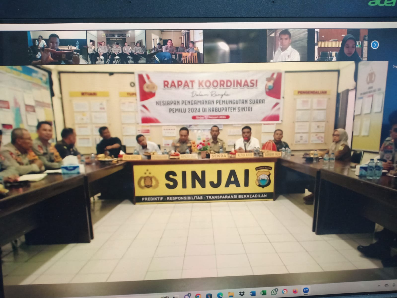 Rapat Koordinasi bersama instansi terkait, Komisi Pemilihan Umum (KPU), dan Badan Pengawas Pemilihan Umum (Bawaslu) dalam persiapan menjelang pergeseran dan pengamanan pemungutan suara. Kegiatan ini diadakan sebagai bagian dari upaya untuk memastikan kelancaran dan keamanan pelaksanaan pemilu di Kabupaten Sinjai.