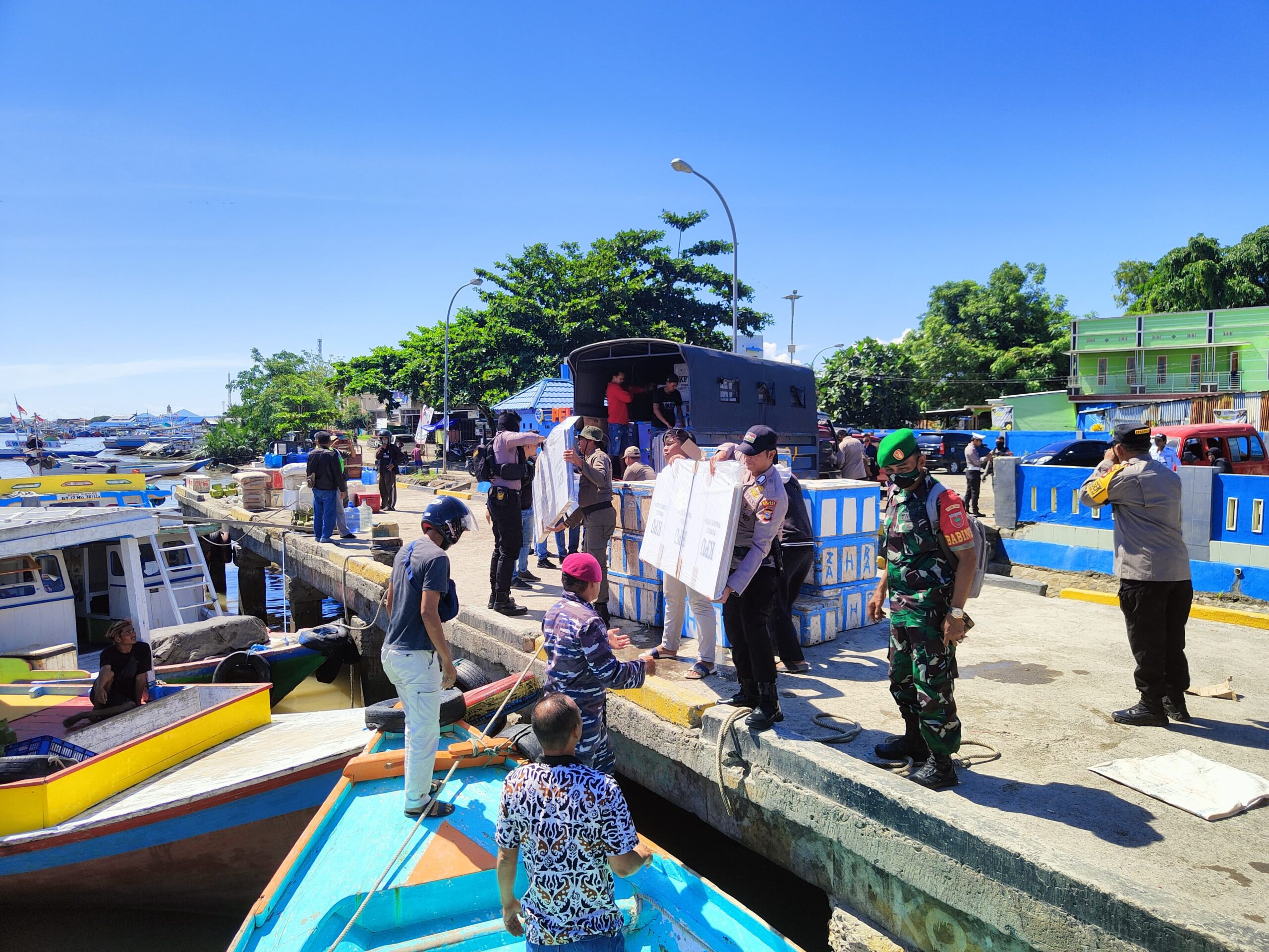 SINJAI, Sul-Sel. Karebanasulsel.id- Polres Sinjai mengawal ketat pendistribusian logistik Pemilu menuju PPK Kecamatan Pulau Sembilan. Gabungan personel pengamanan diterjunkan untuk melakukan pengawalan logistik tersebut, mulai dari dimuat ke mobil di KPUD Sinjai hingga dalam perjalanan menuju ke pelabuhan penyebrangan Cappa Ujung Kelurahan Lappa, sampai ke PPK Pulau Sembilan dilakukan pengawalan dan pengamanan.
