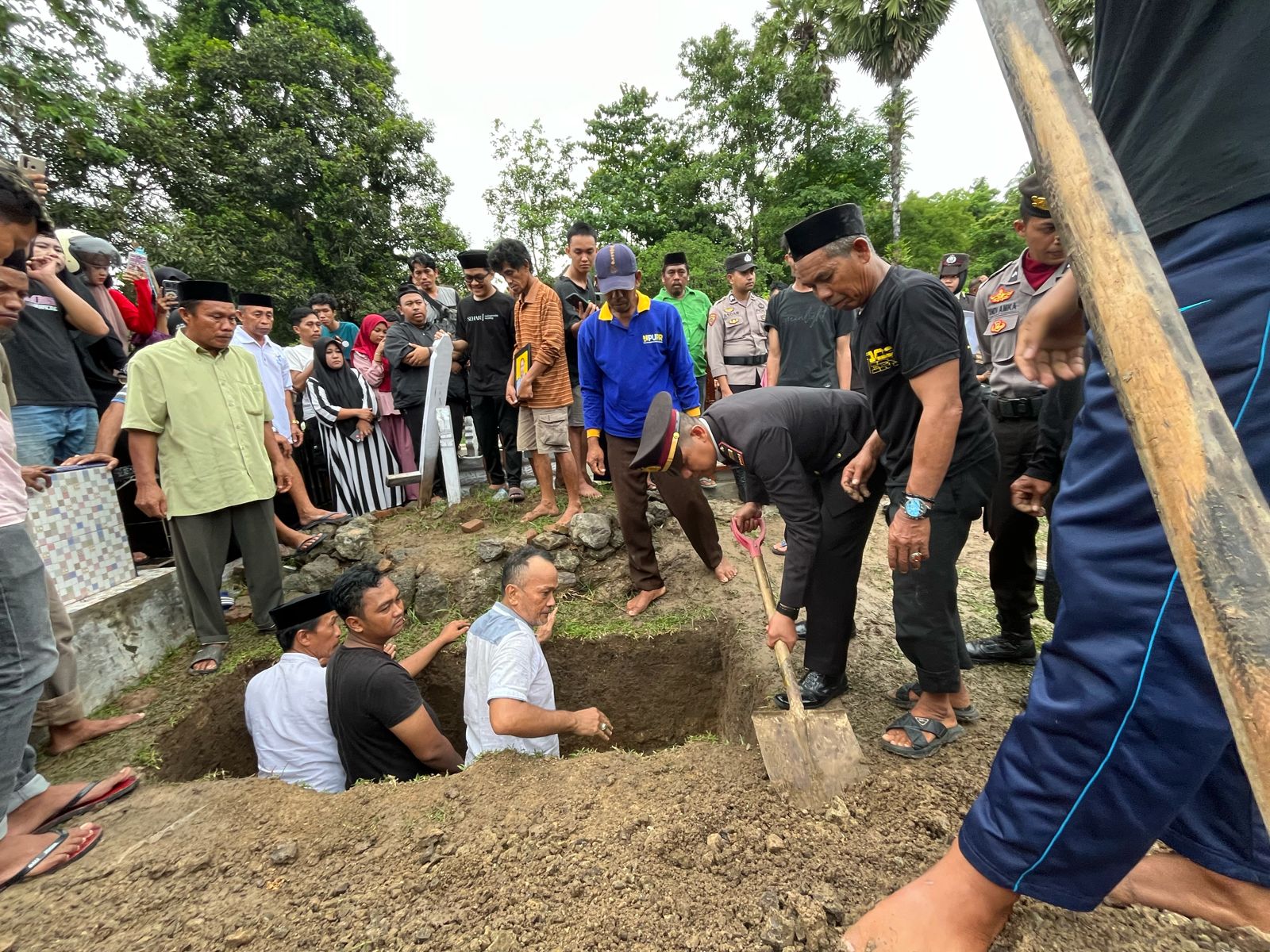 Foto dok. Inspektur upacara melakukan penimbunan jenazah Almarhum di area pemakaman