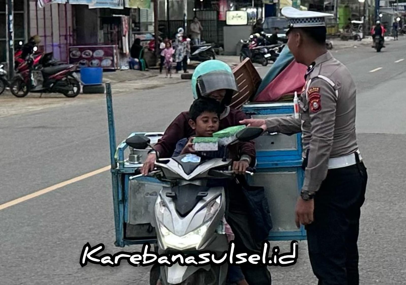 SINJAI, Sul-Sel. Karebanasulsel.id- Meraih keberkahan dibulan Suci Ramadhan, Satuan Lalu Lintas Polres Sinjai melaksanakan bagi- bagi takjil gratis di jalan persatuan raya, Kelurahan Balangnipa, Kecamatan Sinjai Utara, Kabupaten Sinjai, kegiatan tersebut dilakukan untuk meraih berkah di Bulan Suci Ramadhan.