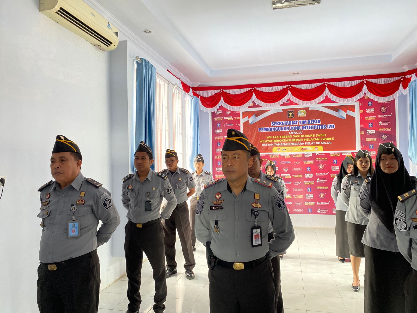 Kepala Rutan Sinjai, Cahyo Sunarko bersama dengan pejabat struktural dan JFT, serta staf turut serta mengikuti apel secara virtual di Aula serbaguna Rutan Sinjai. Kegiatan yang terpusat di Lapangan Upacara Kemenkumham Kuningan Jakarta tersebut dipimpin langsung Plh. Sekretaris Jenderal, Min Usihen yang mewakili Menkumham.