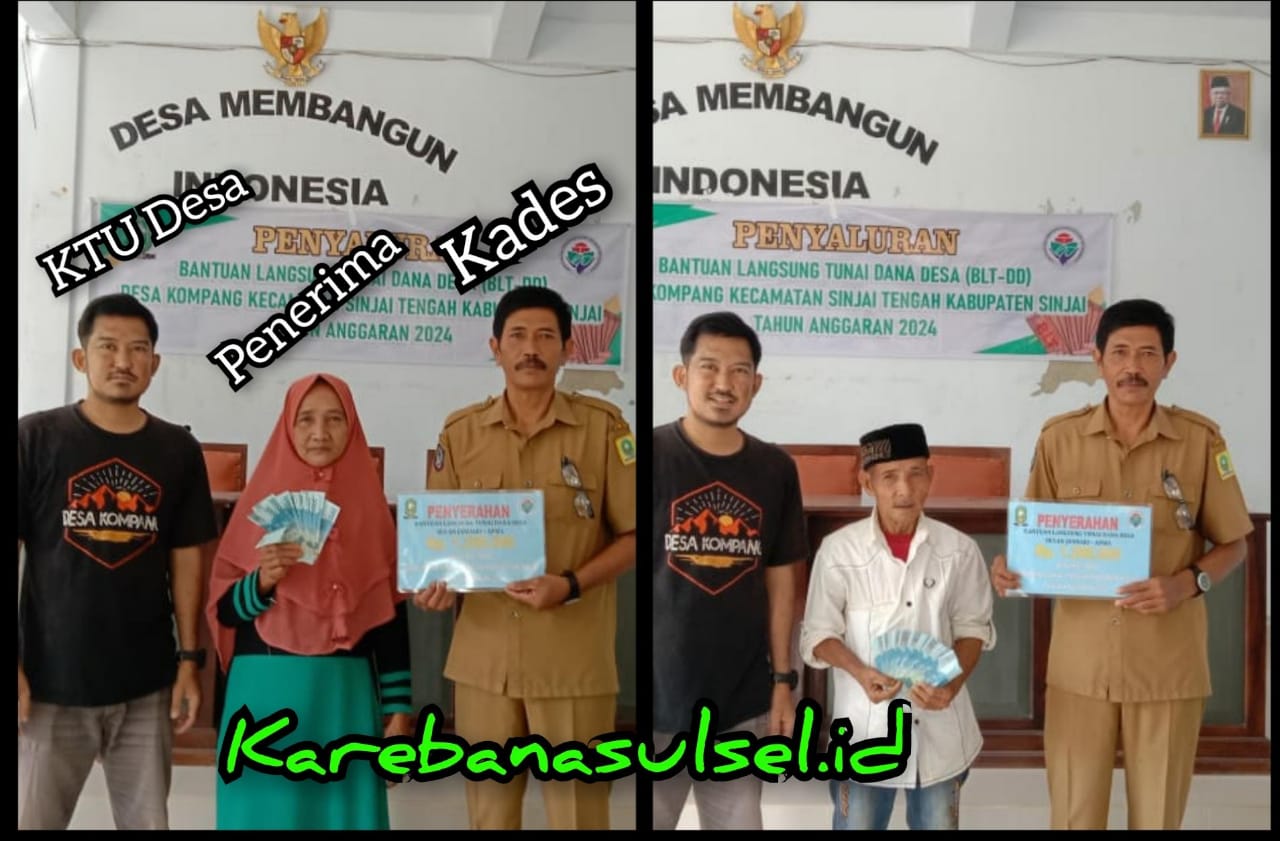 SINJAI, Sul-Sel. Karebanasulsel.id- Pemerintah Desa Kompang (Pemdes), Kecamatan Sinjai Tengah, Kabupaten Sinjai, melaksanakan kegiatan penyaluran BLT-DD tahun 2024 kepada 36 orang Keluarga Penerima Manfaat (KPM) di Tiga Dusun. bertempat di Aula Kantor Desa Kompang. Senin 08/04/2024.