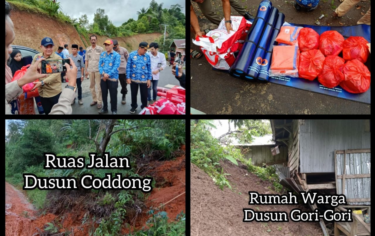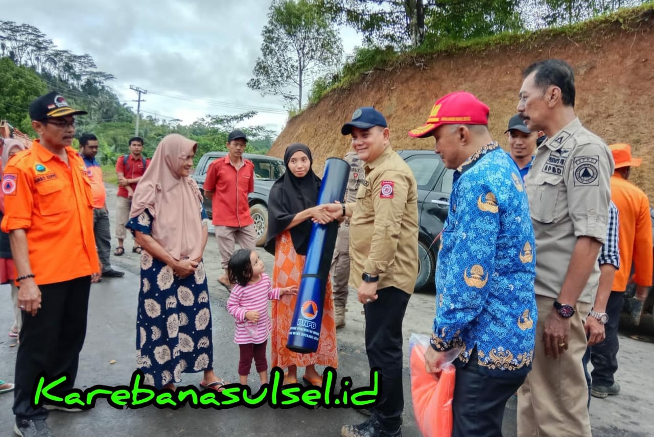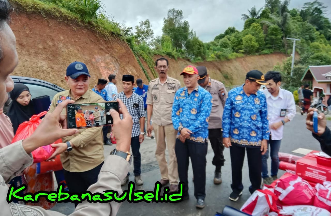 Dalam kunjungan tersebut Pemkab Sinjai bersama Instansi vertikal melangsungkan penyerahan bantuan kepada Masyarakat yang terdampak tanah longsor.