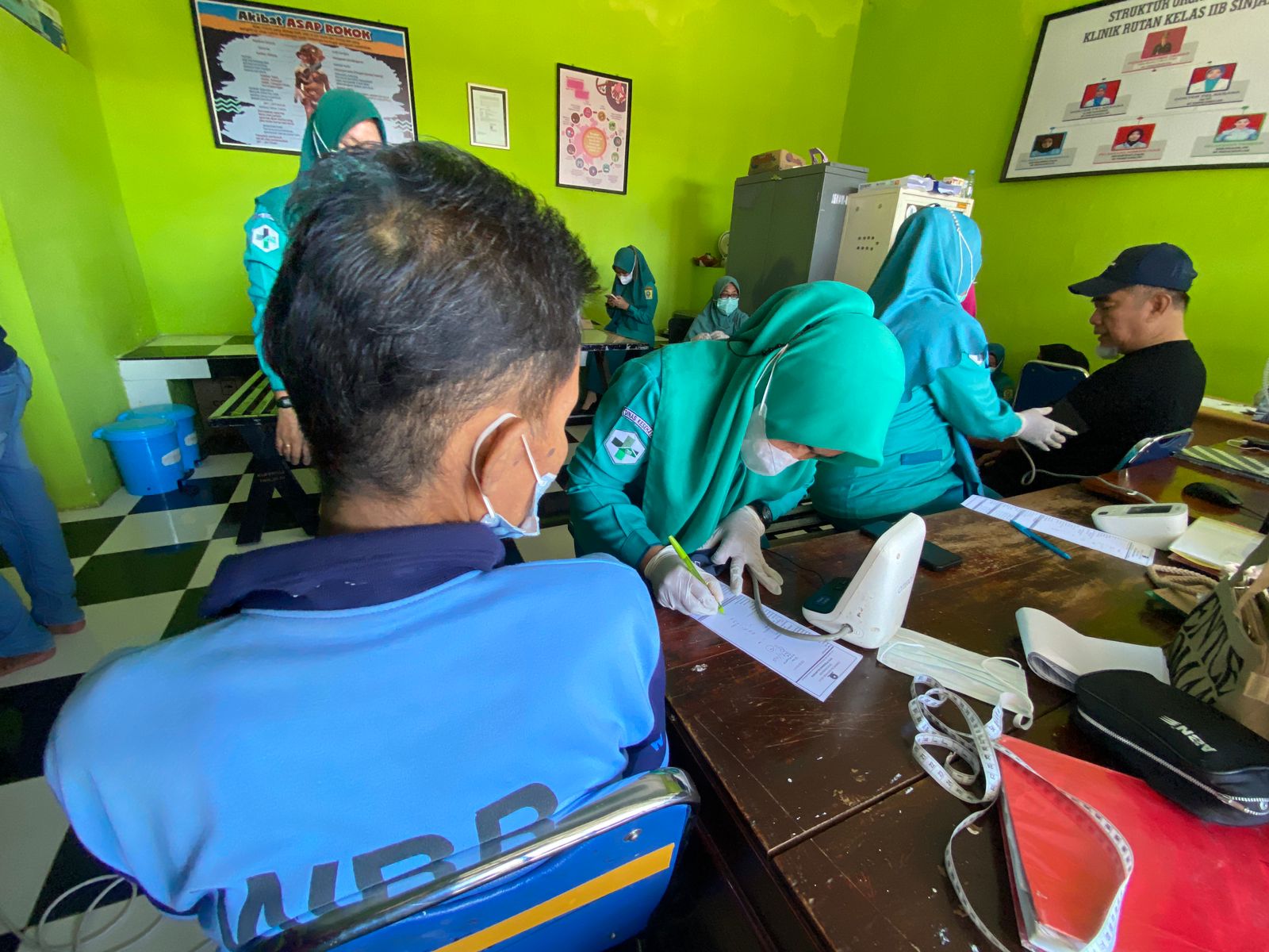 Kegiatan pemeriksaan kesehatan petugas dan Warga Binaan Pemasyarakata (WBP) dilaksanakan di ruang klinik Rutan Sinjai, bersinergi bersama Puskesmas Kecamatan Balangnipa dalam melaksanakan kegiatan tersebut, Kamis (19/4/2024).