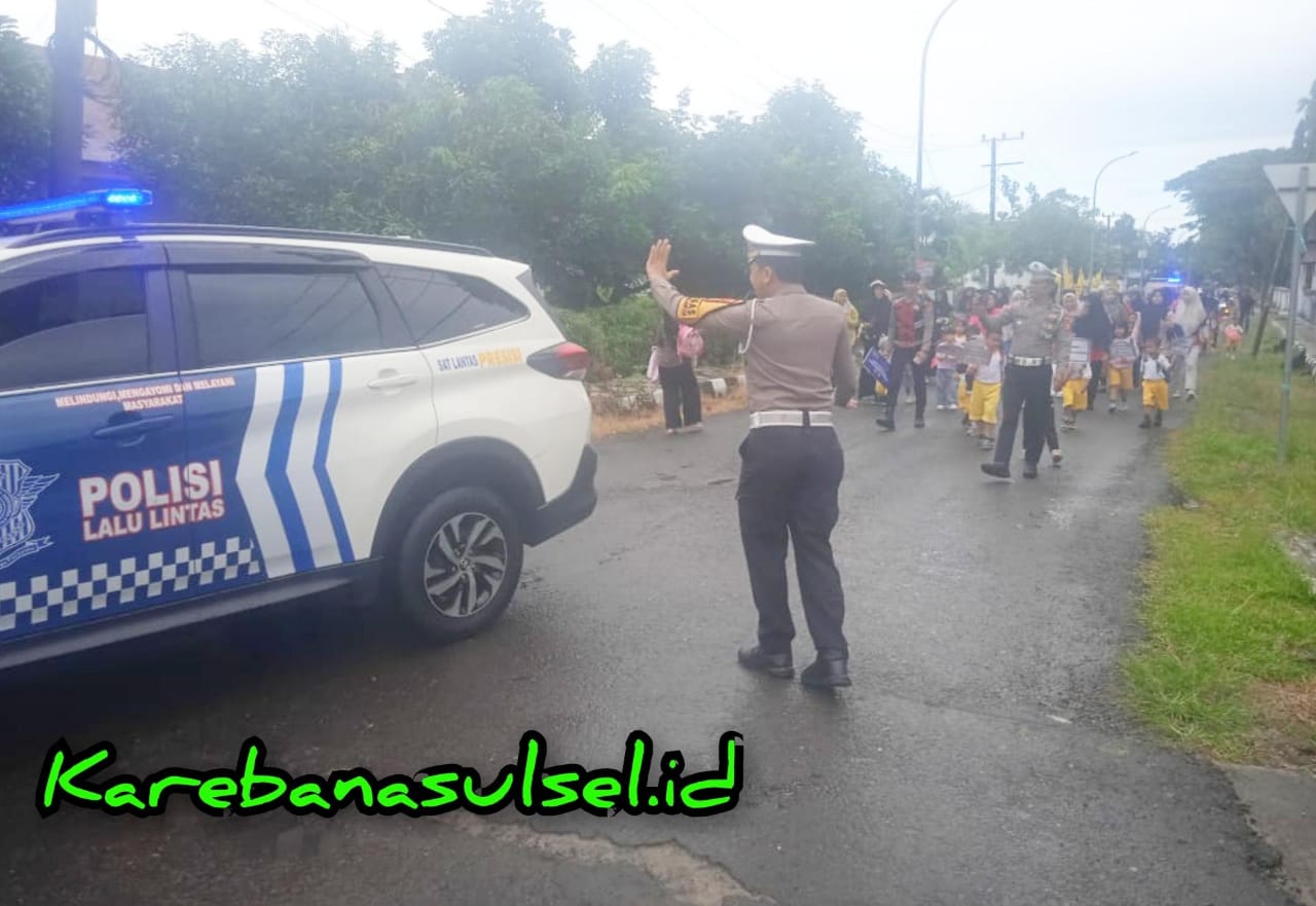 SINJAI, Sul-Sel. Karebanasulsel.id- Personil Satuan Lalu Lintas (Satlantas) Polres Sinjai melaksanakan pengawalan dan pengaturan arus lalu lintas dalam kegiatan jalan santai yang diikuti oleh anak-anak TK Kemala Bhayangkari 13 cabang Sinjai.