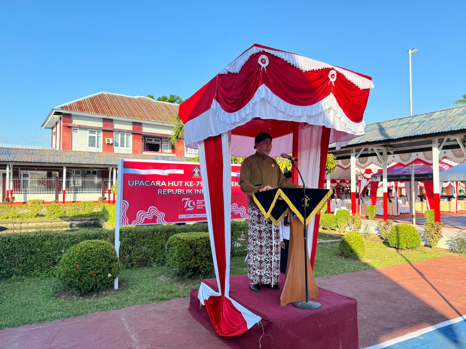 Bertempat di lapangan serbagunq, Kegiatan tersebut diikuti oleh kepala Rutan Kelas lIB Sinjai, pejabat struktural dan pegawai beserta Warga Binaan Pemasyarakatan (WBP) turut mengikuti upacara dalam memperingati hari kemerdekaan Republik Indonesian yang ke-79 tahun.