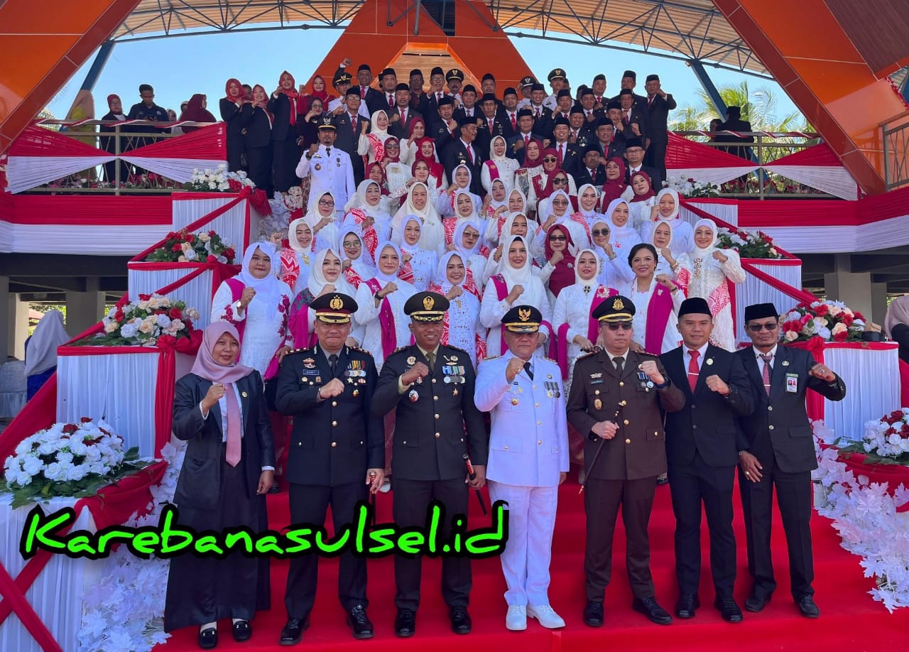 SINJAI, Sul-Sel. Karebanasulsel.id- Kepala Kepolisian Resor Sinjai, Ajun Komisaris Besar Polisi (AKBP) Harry Azhar, SH., S.Ik., MH, didampingi oleh Ketua Bhayangkari Cabang Sinjai, Ny. Rina Harry, turut menghadiri upacara peringatan Hari Ulang Tahun (HUT) Kemerdekaan Republik Indonesia yang ke-79 pada tahun 2024.
