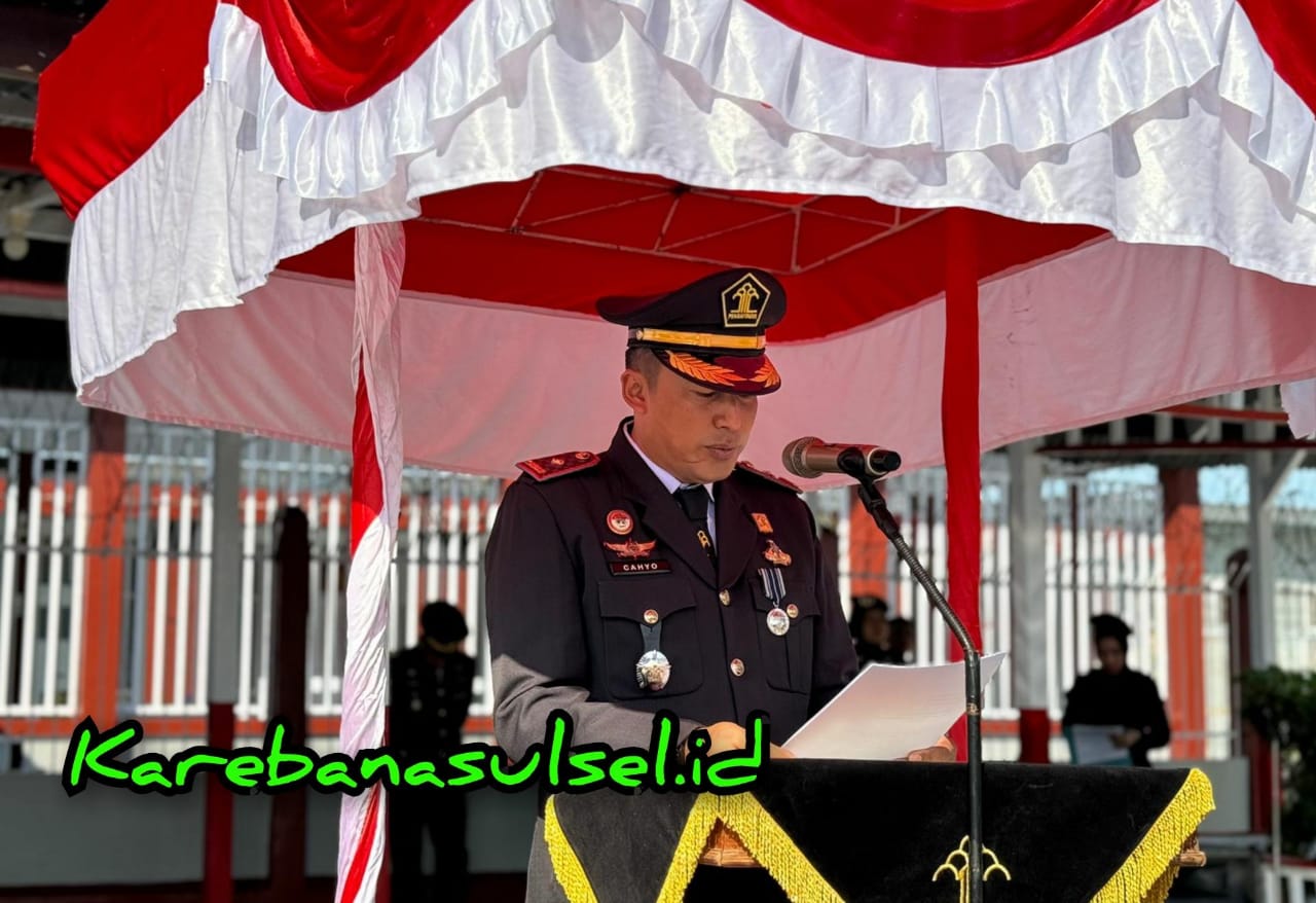SINJAI, Sulsel. Karebanasulsel.id- Upacara Peringatan Hari Pengayoman ke 79 Kementerian Hukum dan Hak Asasi Manusia dilaksanakan serentak diseluruh Kantor Wilayah dan Unit Pelaksana Teknis se-Indonesia termasuk di Rumah Tahanan Negara Kelas IIB Sinjai, Senin (19/08/2024).