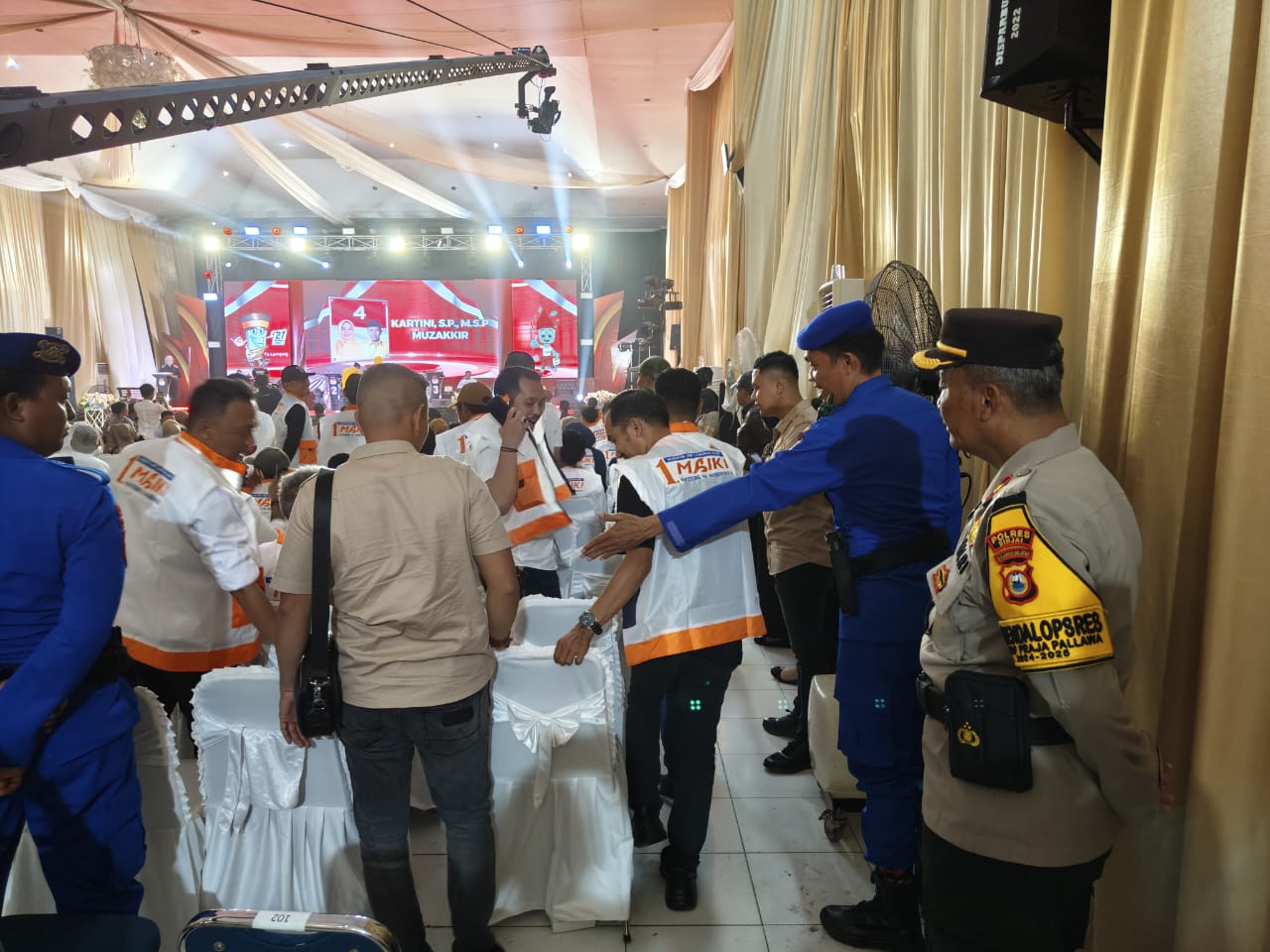 Petugas Kepolisian Polres Sinjai Melakukan pemeriksaan Pada Para Tamu Undangan Yang Masuk Ke Ruang Gedung Pertemuan