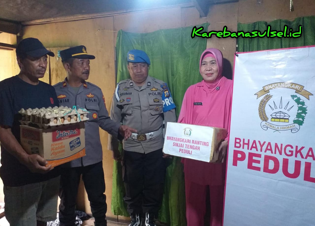 Ketua Bhayangkari Ranting Polsek Sinjai Tengah Polres Sinjai Bersama Rombongan Melakukan Baksos Pada Warga Yang Terdampak Bencana