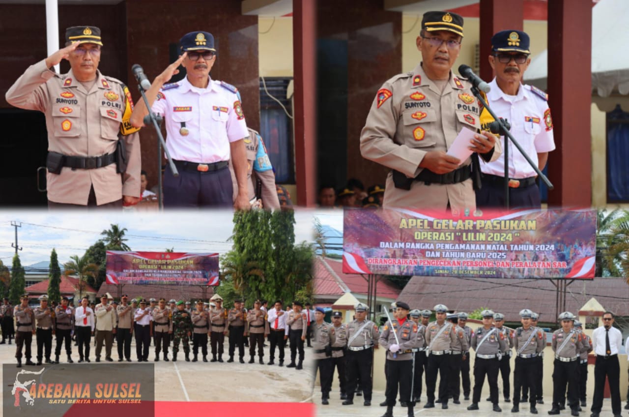 SINJAI, Karebanasulsel.id- Kepolisian Resor Sinjai melaksanakan Apel Gelar Pasukan Ops Kepolisian Terpusat Lilin-2024 dalam rangka Pengamanan Natal Tahun 2024 dan Tahun Baru 2024 dirangkaikan dengan pengecekan personil dan Peralatan SAR.