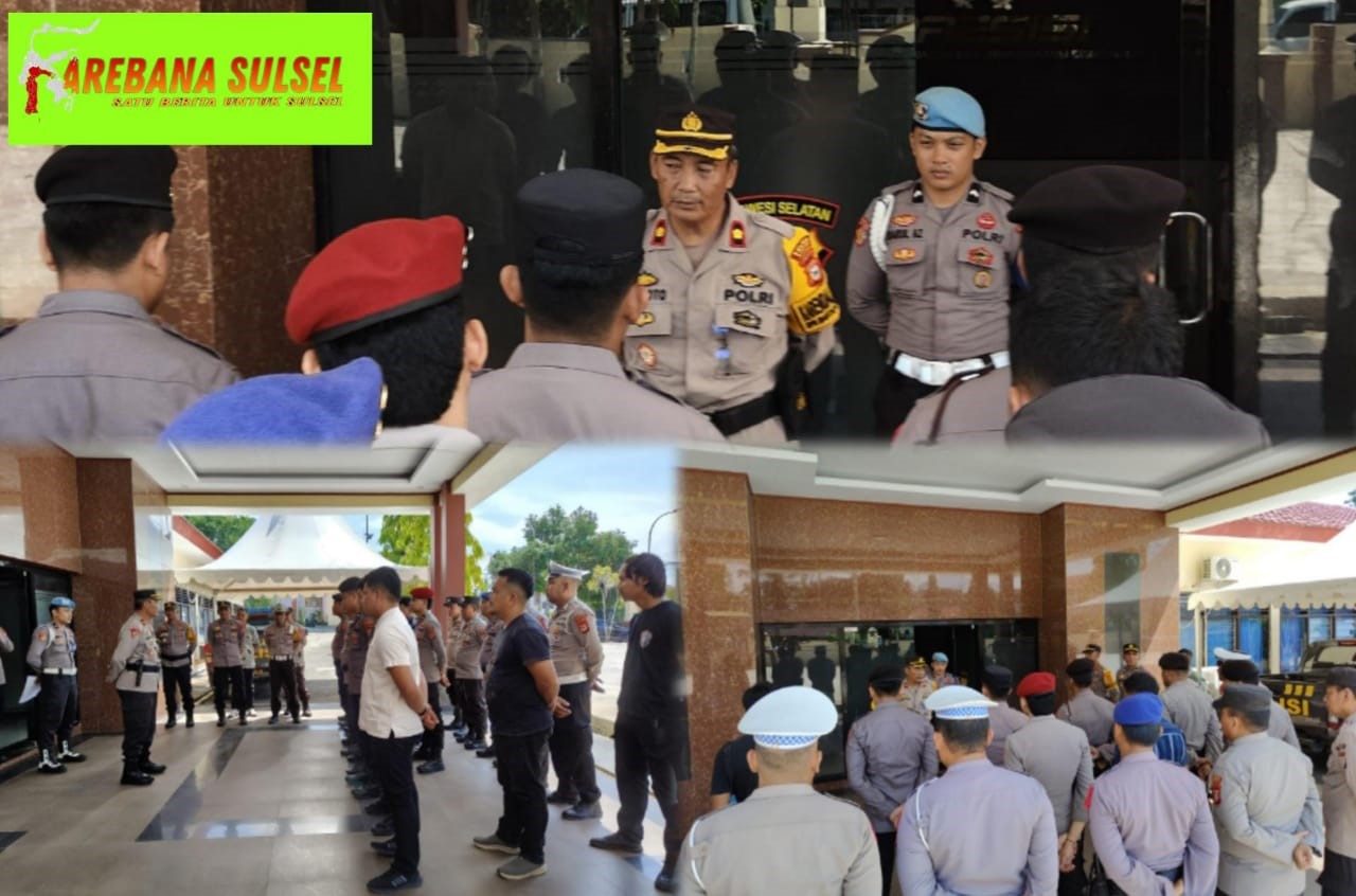 Apel bertempat didepan lobby Pratisara Wirya Mapolres Sinjai, yang dipimpin oleh Kabag Ops Polres Sinjai Kompol Sunyoto, S.Sos dan diikuti oleh personel yang terlibat dalam pengamanan sesuai Surat Perintah Kapolres Sinjai.