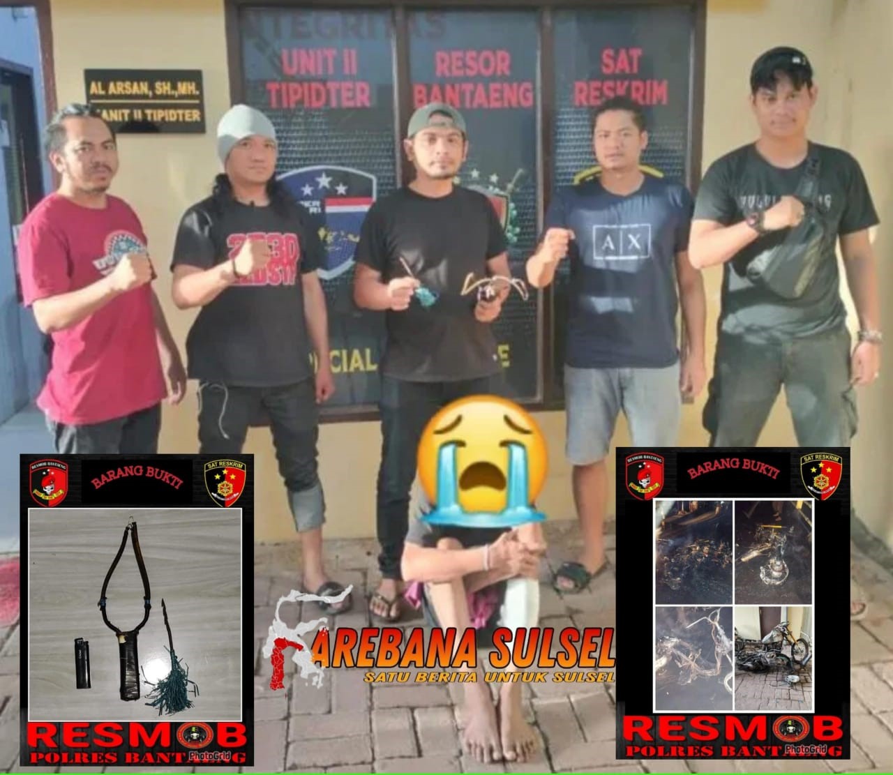 BANTAENG, Karebanasulsel.id- Tim Buser Sat Reskrim Polres Bantaeng yang dipimpin Kanit Resmob, Bripka Sabil bersama dengan anggotanya, berhasil mengamankan Terduga Pelaku tindak pidana pembusuran dan pengrusakan 2 unit sepeda motor dengan cara di bakar yang terjadi pada Rabu dinihari (01 Januarii 2025), sekitar Pukul 04:00 Wita.