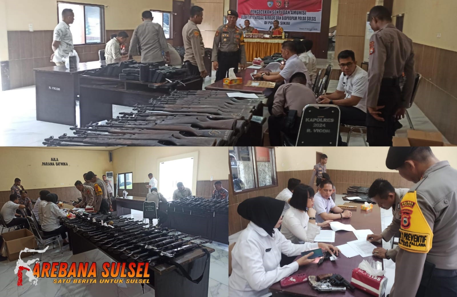SINJAI, Karebanasulsel.id- Bentuk pengawasan yang rutin dilakukan sebagai bagian dari penegakan disiplin dan profesionalisme anggota Polri dengan menggelar pemeriksaan senjata api (senpi) dan amunisi oleh tim gabungan dari Itwasda, Rolog, dan Bidpropam Polda Sulsel, Sabtu (11/01/2025).