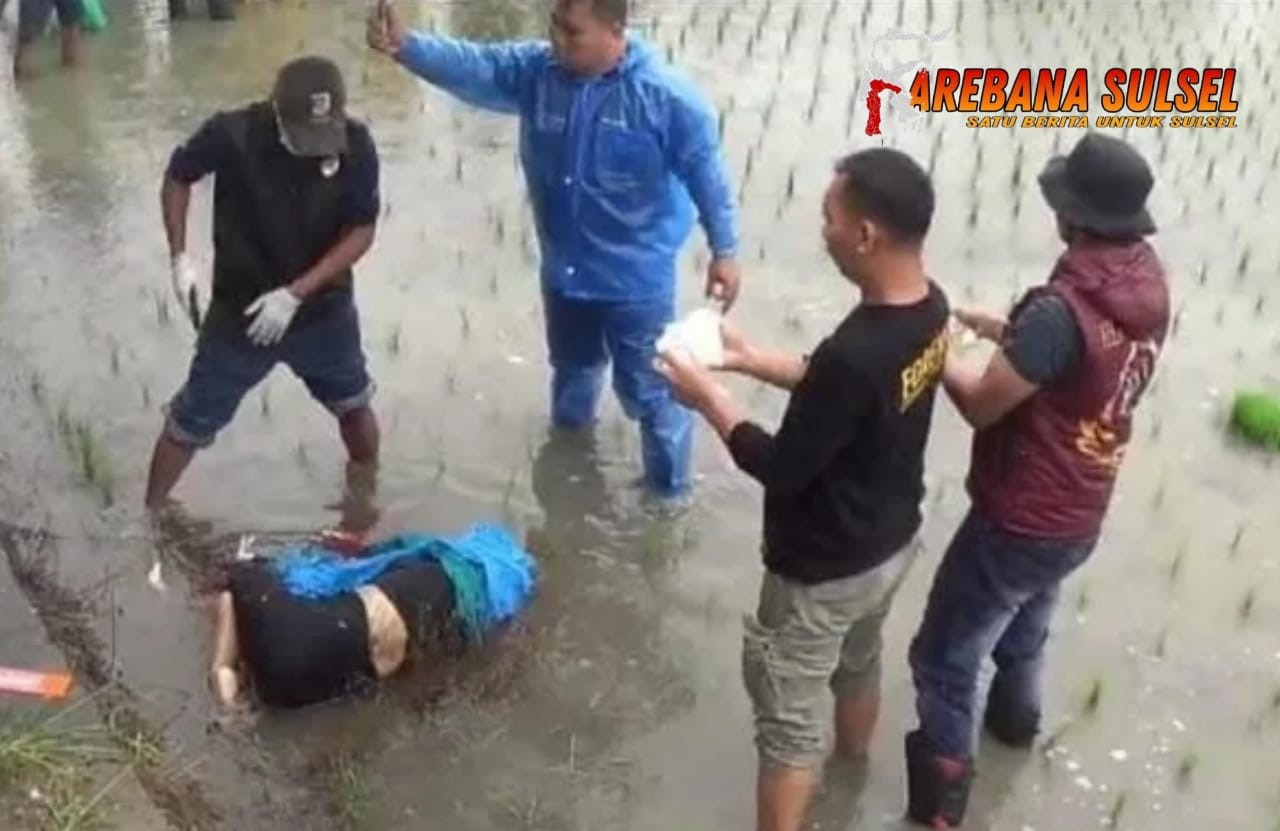 Kondisi Korban pembunuhan Putri Indah Sari Nurcahyani tertelungkup di area pematang persawahan, Selasa 21/01/2025. Diketahui dari keterangan Satriani Dg Ngai (39) yang mengaku orang tua kandung dari korban, warga Desa Labbakang, Kecamatan Bajeng tersebut, mengatakan bahwa anak kandungnya (Korban) bernama Putri Indah Sari masih berumur 18 tahun.