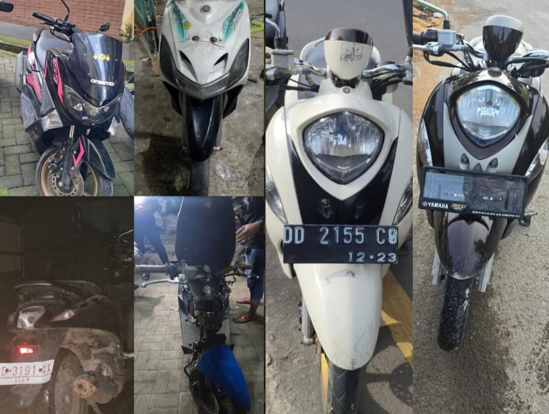 Barang bukti yang berhasil diamankan meliputi 1 unit Yamaha Mio Sporty warna putih 1 unit Yamaha Nmax warna hitam, 1 unit Yamaha Mio Soul, 1 unit Honda Genio warna hitam-merah, 1 unit Yamaha Fino warna cokelat (LP/B/145/II/2025/SPKT/Res Gowa), 1 unit Yamaha Fino warna putih.
