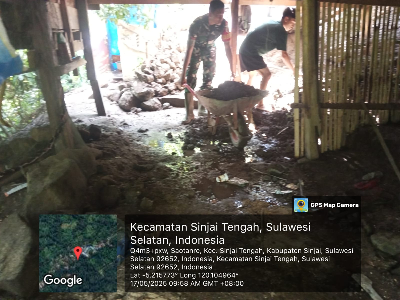 “Saat ini saya bersama Kepala Dusun Saukang dan dibantu warga setempat melakukan evakuasi pembersihan material di bawah kolom rumah warga yang terdampak. Dan Alhamdulillah kami laporkan tidak ada korban.” Terangnya.