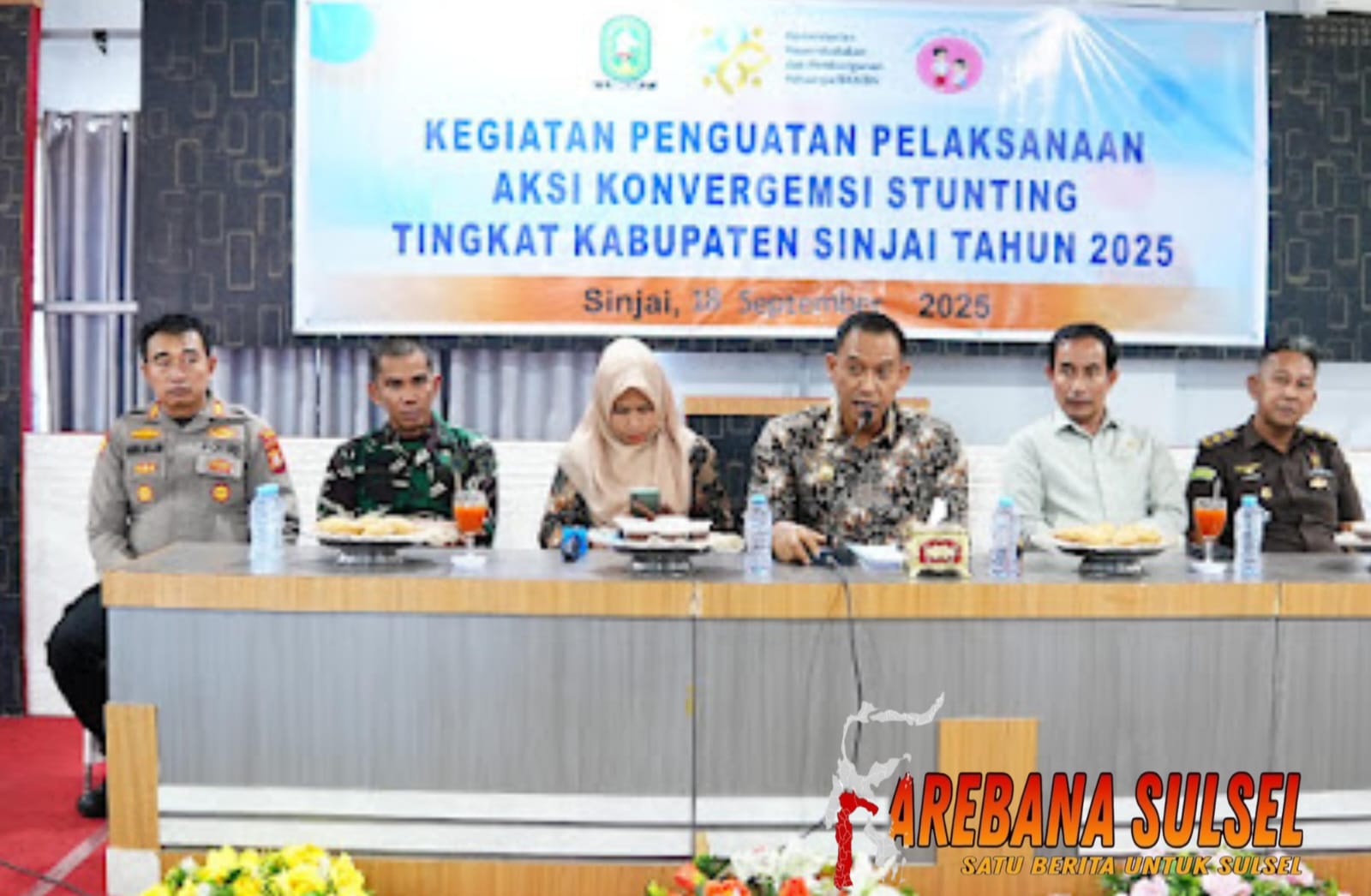 SINJAI, Karebanasulsel.id- Pemerintah Kabupaten Sinjai menggelar Kegiatan Penguatan Pelaksanan Aksi Konvergensi Stunting dalam rangka evaluasi pelaksanaan Aksi Konvergensi Penanganan Stunting di desa/kelurahan lokus sebagai bagian dari upaya percepatan penurunan stunting di Kabupaten Sinjai, pada Kamis (18/09/25) di Aula Wisma Sanjaya Putra, JI. Sam Ratulangi, Kelurahan Balangnipa, Kecamatan Sinjai Utara.