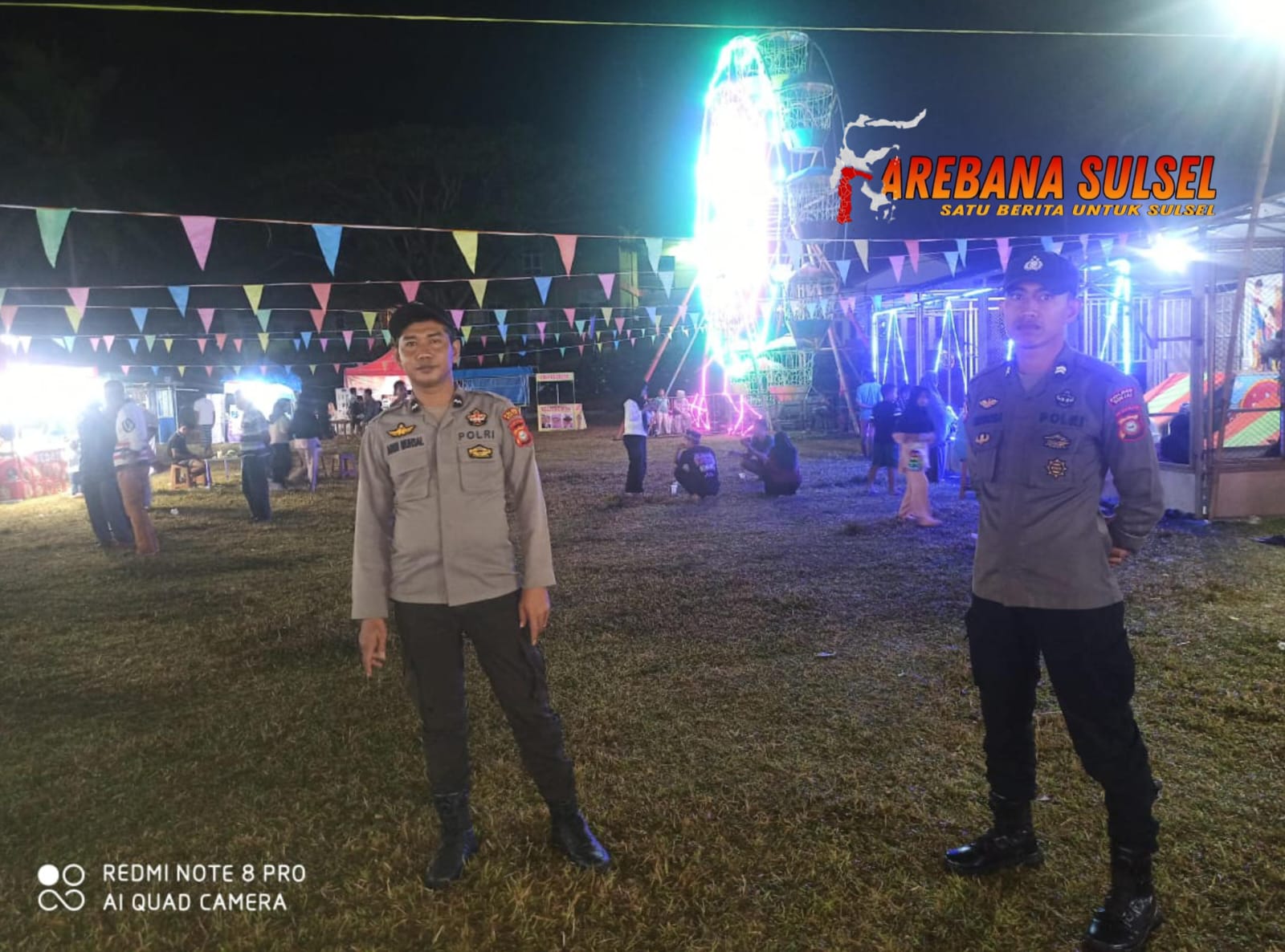 Dalam kegiatan tersebut, tampak dua personel Polsek Sinjai Selatan Polres Sinjai melakukan patroli rutin dengan menyisir area pasar malam demi memastikan keamanan pengunjung dan pedagang.