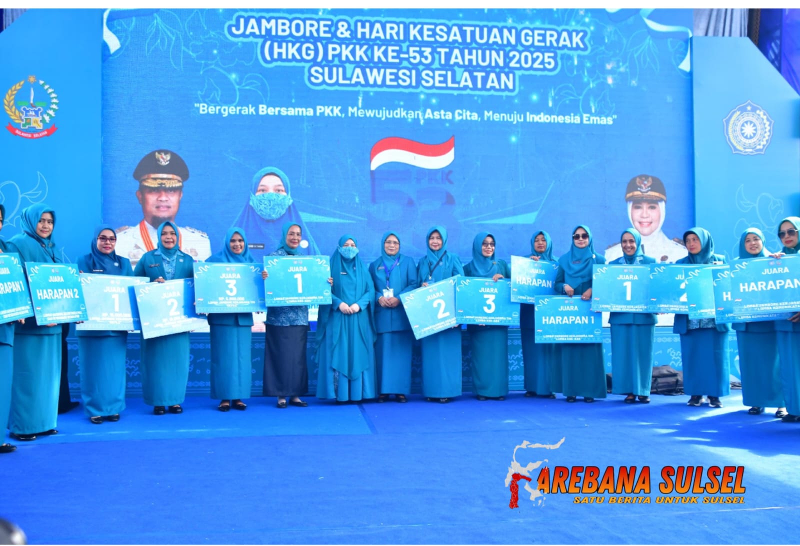 Kegiatan yang mengusung tema “Bergerak Bersama PKK, Mewujudkan Asta Cita Menuju Indonesia Emas” resmi ditutup pada Sabtu (4/10/2025) oleh Gubernur Sulawesi Selatan A. Sudirman Sulaiman, didampingi Wakil Gubernur Sulsel, Fatmawati Rusdi dan Ketua TP-PKK Provinsi Sulsel, Naoemi Octarina.