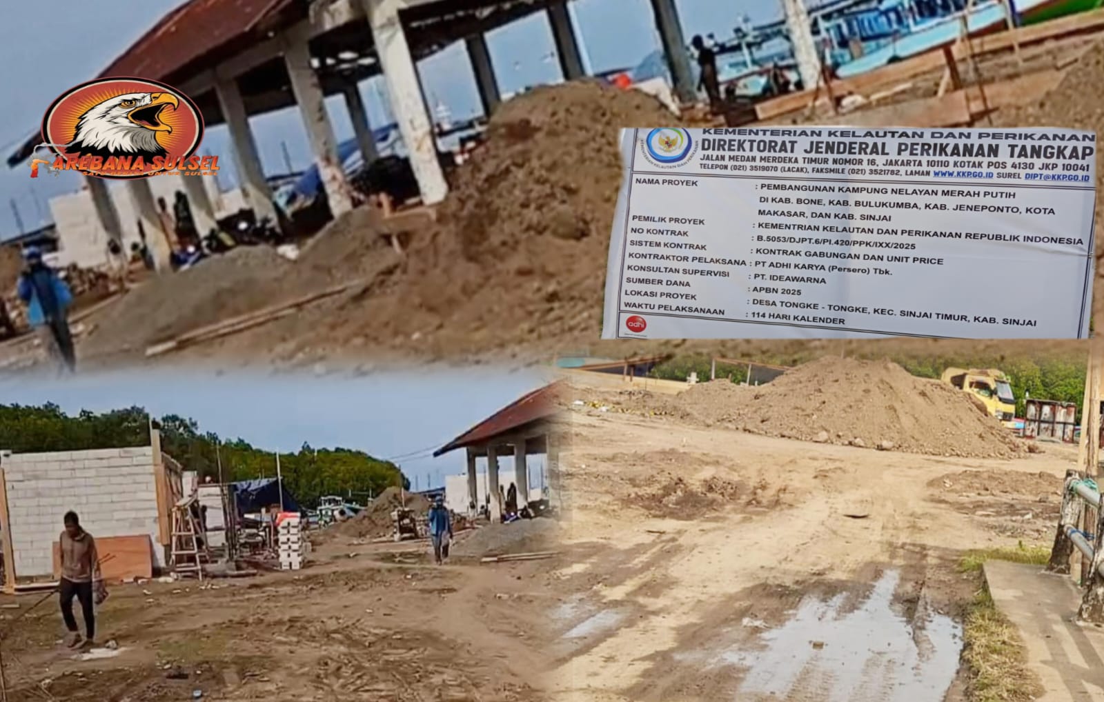 SINJAI, Karebanasulsel.id- Pembangunan Kampung Nelayan Merah Putih di Desa Tongke-Tongke, Kecamatan Sinjai Timur, Kabupaten Sinjai, kini menuai sorotan tajam dari masyarakat. Proyek berskala nasional yang digagas oleh Kementerian Kelautan dan Perikanan Republik Indonesia (KKP RI) ini dinilai kurang transparan dan terindikasi mengabaikan aspek keselamatan kerja di lapangan. Dan terpantau langsung di lapangan pada Rabu 22/10/2025.