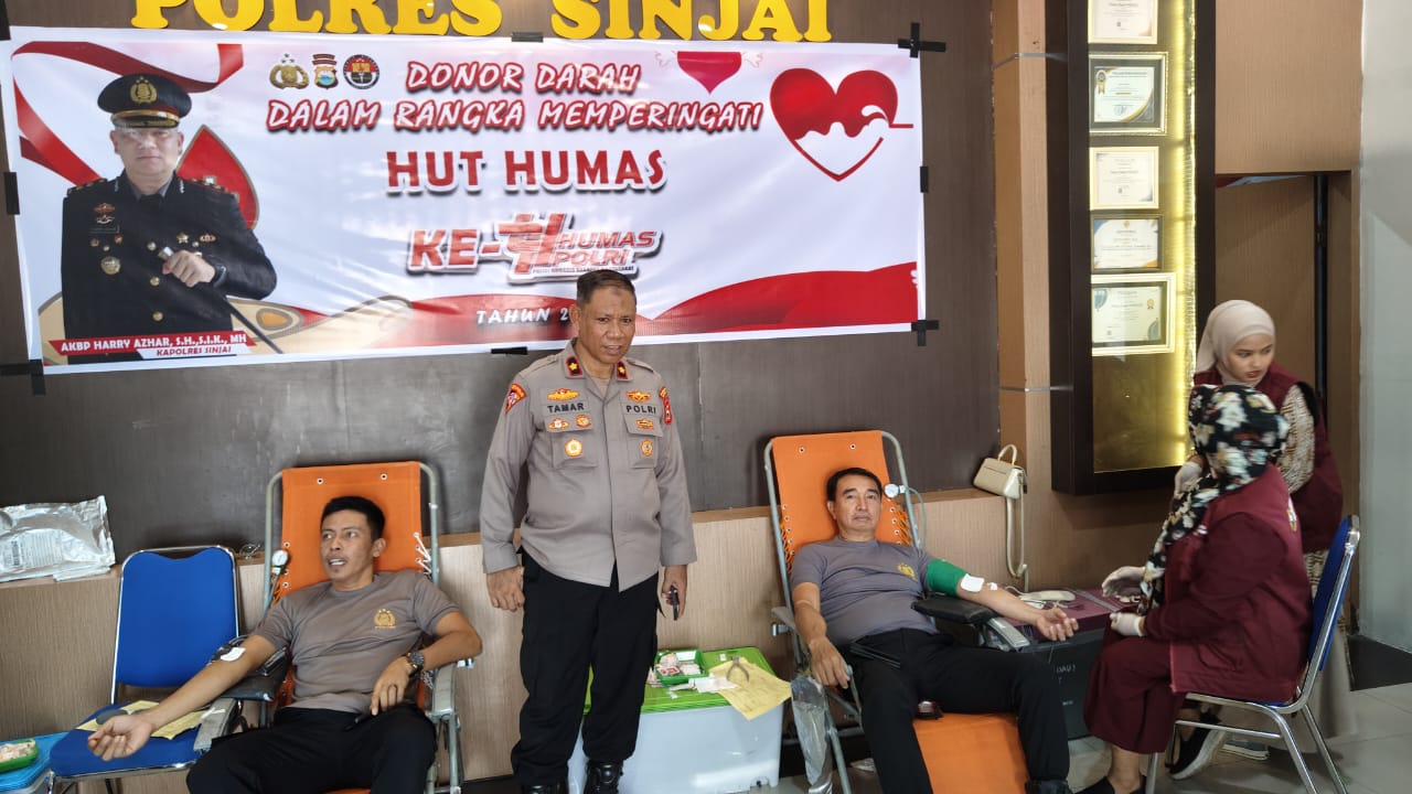 “Donor darah ini merupakan bentuk bakti kemanusiaan Polres Sinjai sekaligus momentum memperingati HUT Humas Polri ke-74. Kegiatan ini terlaksana berkat kerja sama yang baik antara Polres Sinjai dengan RSUD Sinjai,” ujar Kapolres.