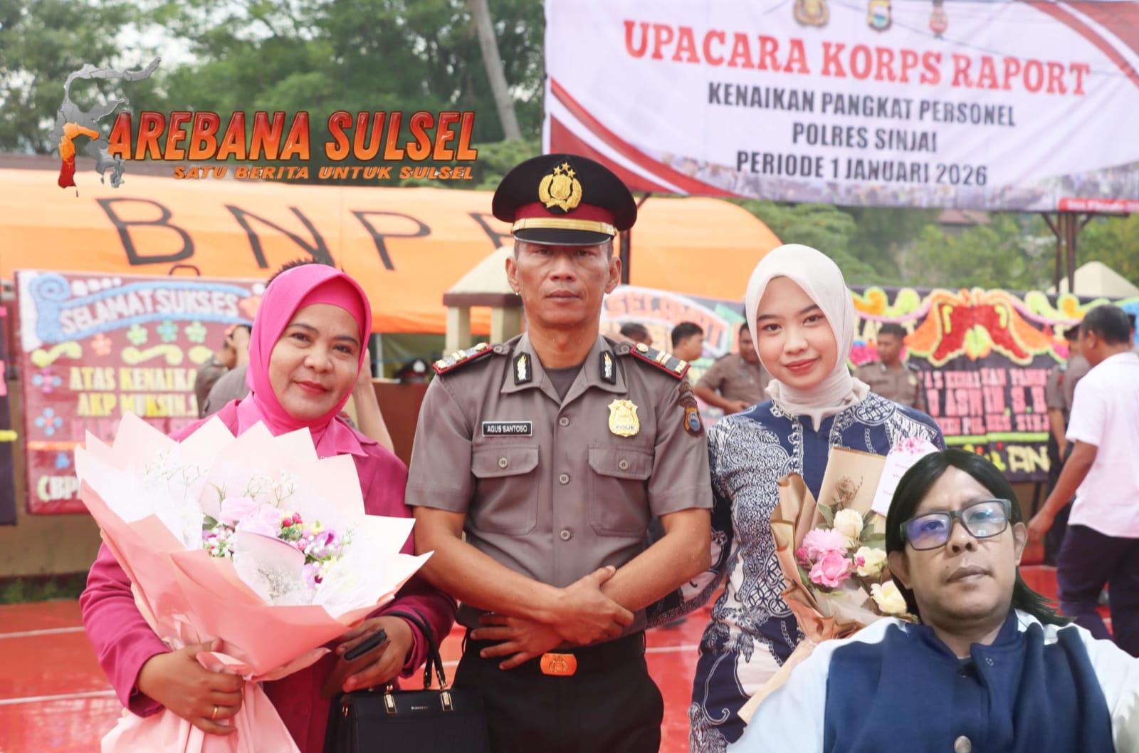 SINJAI, Karebanasulsel.id- Pimpinan Redaksi Karebanasulsel, Abas Kelana, menyampaikan rasa syukur, bangga, dan apresiasi atas kenaikan pangkat Kasi Humas Polres Sinjai, Agus Santoso, dari Inspektur Dua (IPDA) menjadi Inspektur Polisi Satu (IPTU). Rabu 31/12/2025.