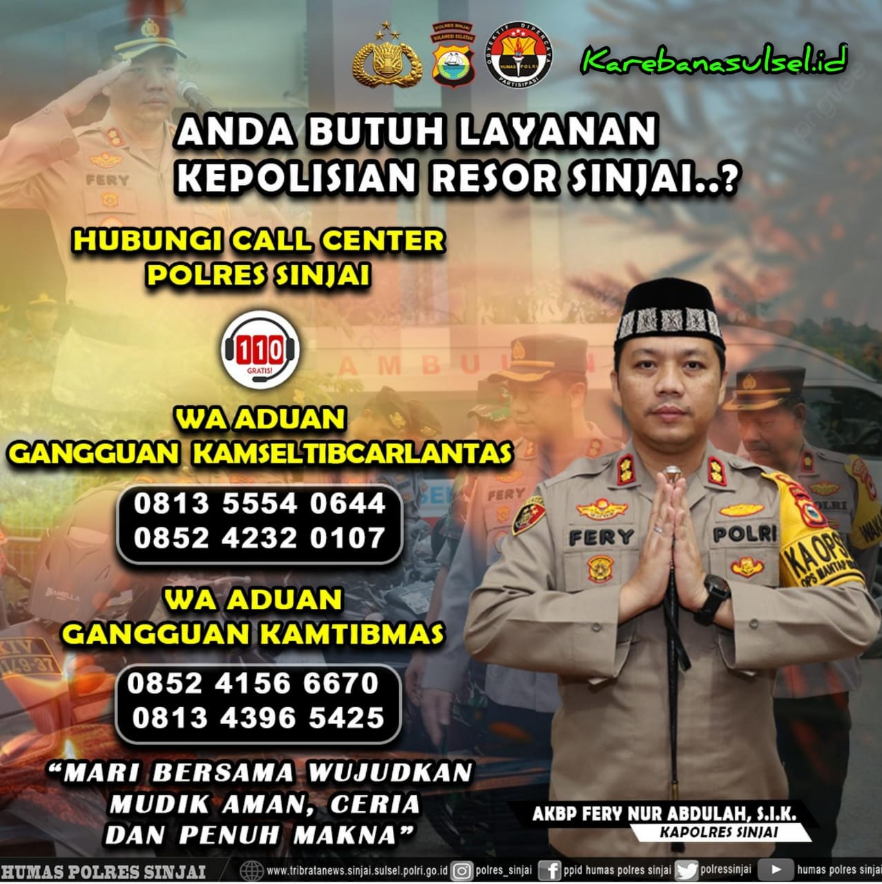 Masyarakat Butuh Layanan Atau Bantuan Polres Sinjai Selama Mudik, Segera Hubungi Nomor WA Centre Ini