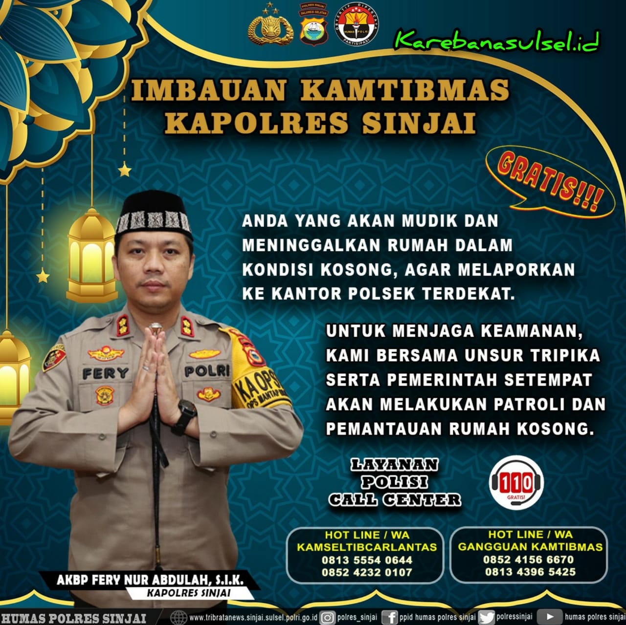 SINJAI, Sul-Sel. Karebanasulsel.id- Kepala Kepolisian Resor Sinjai, Ajun Komisaris Besar Polisi (Akbp) Fery Nur Abdulah, S.Ik, menyampaikan pentingnya kesadaran warga yang mudik untuk melaporkan rumah...