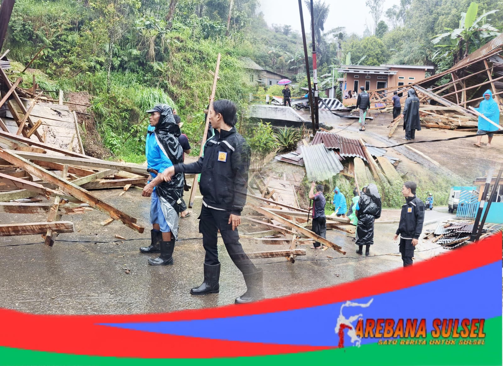 Bravo! Kapolsek Sinjai Barat Evakuasi Material Rumah Warga yang Roboh Akibat Longsor...