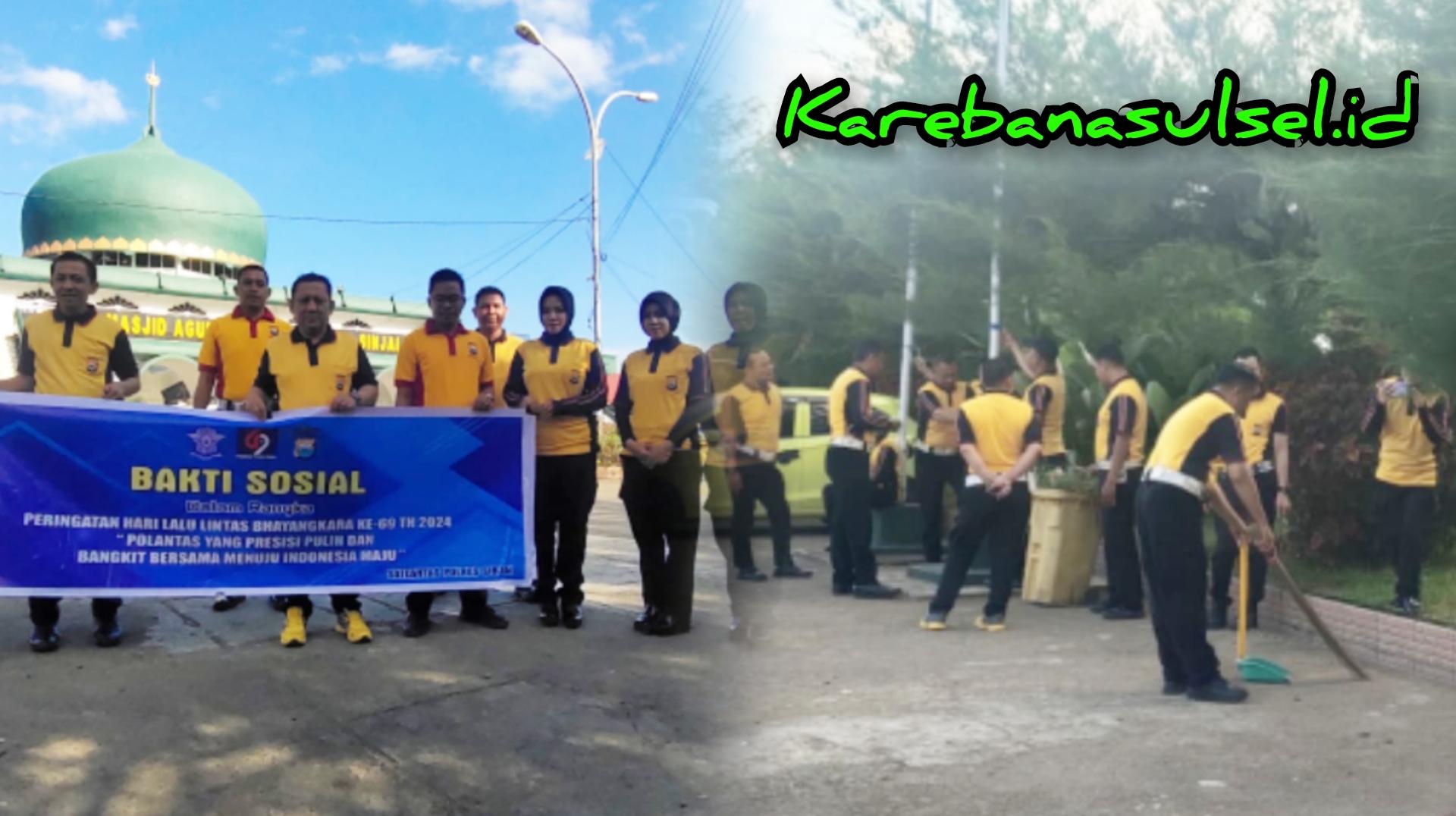 Satlantas Polres Sinjai Kerja Bakti Bersihkan Mesjid...