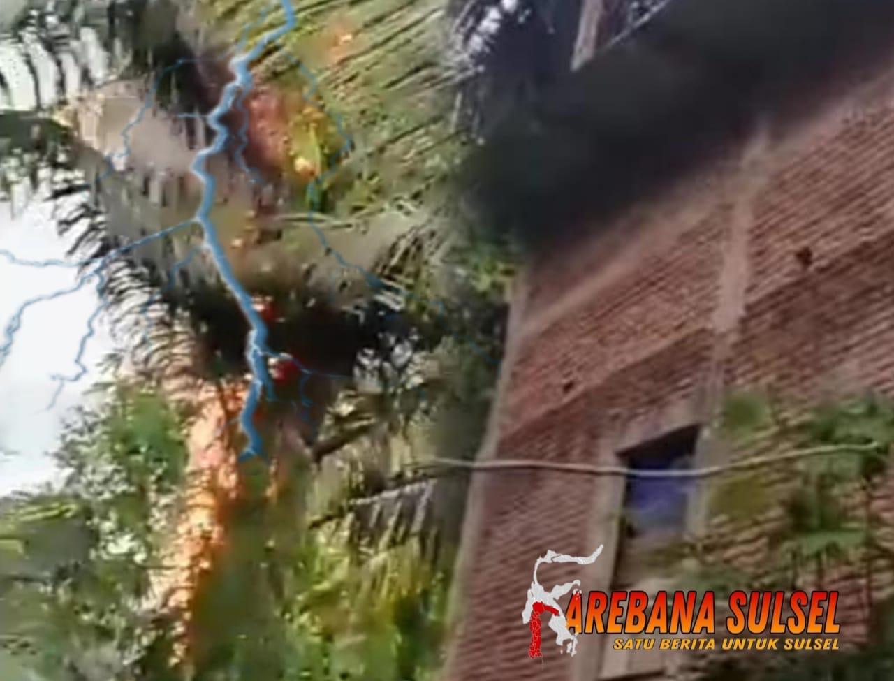 Pohon Areng Kena Petir, Rumah Warga di Saotanre Sinjai Tengah Nyaris Ikut Terbakar...