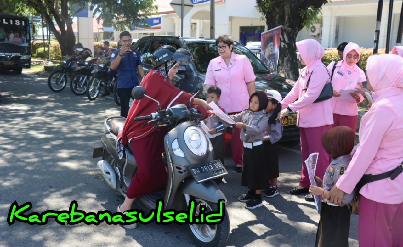 SINJAI, Sul-Sel. Karebanasulsel.id- Pengurus Bhayangkari Cabang Sinjai bersama para murid TK dan guru membagikan brosur penerimaan anak didik TK Kemala Bhayangkari Sinjai Tahun Ajaran 2024 / 2025. Pe...